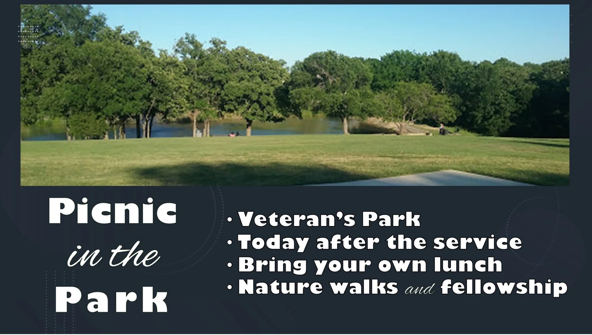 Picnic in the Park: Following the service, all are invited to a picnic lunch at Veteran’s Park, in Arlington. Bring your own lunch/drinks, camp chairs or blankets, and after lunch we can go for a nature walk, take a nap under a shade tree, or just relax and fellowship. Bring your family and friends!